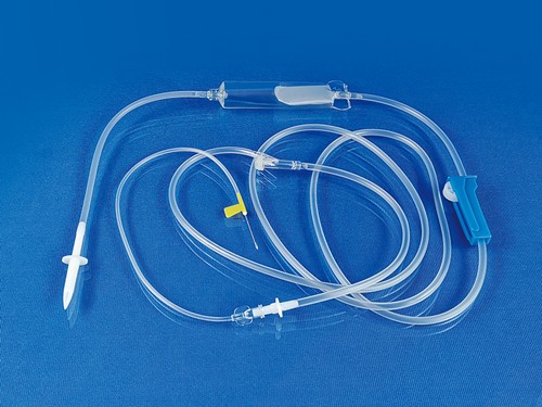 一次性使用输血器采用医用高分子材料制造,导管采用弹性(PVC)聚氯乙烯/PP